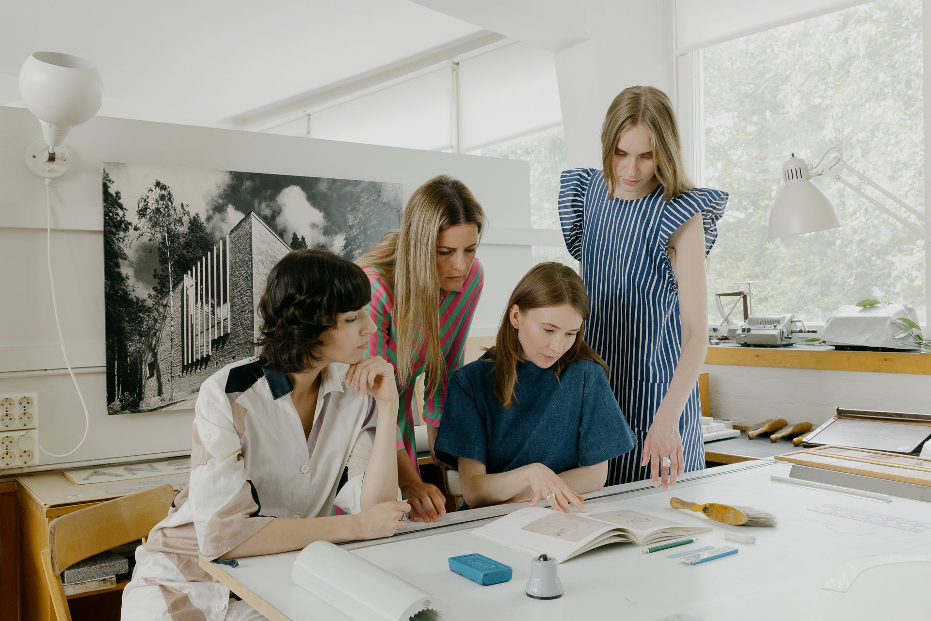 Aino Aalto in the kitchen, alone. Architect, designer, and Alvar’s first wife. While he traveled for work across Europe and America, she often remained at home — her solitude quietly shaping the intimacy of their domestic architecture. Aalto House, Helsinki, Finland, 2025.Aino Aalto in the kitchen — the quiet heart of the home, where design met daily life. Every surface and gesture bore her touch. Aalto House, Helsinki, Finland, 2025.A Danish girl, known for her extraordinary beauty, and a young woman from a prominent Chinese dynasty wait to be received by Alvar Aalto for an interview. Drawn to the magnetism of Aalto’s studio, these young aspirants carry with them stories of distant modernities and fragile ambition. Aalto House, Helsinki, Finland, 2025.Veli Paatela lies on the floor after Alvar Aalto punched him in a rare violent quarrel—Paatela had sketched unaware the Danish girl had discarded Aalto’s drawings. Chaos in Aalto’s otherwise composed world, where emotions simmer beneath form. Aalto House, Helsinki, Finland, 2025.Studio life flows into the studio space of the Aalto House. From left: Sinikka Killinen, Marja Pystynen, and Marja-Liisa Parko — young collaborators whose presence blurred the boundary between home and work. Assistants, drawings, and ideas circulated freely from the dining table to the drafting room. Aalto House, Helsinki, Finland, 2025.Aino Aalto in her final months, after a cancer diagnosis she shared with no one. She kept her illness private, folding silence into her final days — just as she had folded herself into the corners of the home she helped build. Aalto House, Helsinki, Finland, 2025.Elissa Aalto enters the house. Maija Heikinheimo, believing herself the chosen bride, looks on with scorn. Aino watches it all from a framed photograph. A turning point unfolds in quiet tension — the past, the present, and the future women of Aalto’s life all suspended in one room. Aalto House, Helsinki, Finland, 2025.Following Elissa’s arrival, the summer house in Muuratsalo begins to take shape. A new chapter begins on an island of experiments, where Elissa’s presence helps define Aalto’s late architectural vision. Muuratsalo Experimental House, Muuratsalo, Finland, 2025.Elissa Aalto in Muuratsalo. A partner in work and life — she shaped ideas with her own hands. Muuratsalo Experimental House, Muuratsalo, Finland, 2025.Elissa Aalto in Muuratsalo. A solitary moment in the courtyard — this space of testing became a space of transformation. Muuratsalo Experimental House, Muuratsalo, Finland, 2025.Textile designer Dora Jung in the new Atelier. A master of linen, Jung brought texture, precision, and modern softness into the Aalto world — her weaves echoing the architecture’s rhythm. Aalto Studio, Helsinki, Finland, 2025.Pirkko Söderman, Ilona Lehtinen, Dora Jung, and Leena Peltonen — the women behind Finlandia Hall. Aalto Studio, Helsinki, Finland, 2025.Elissa Aalto in the new Atelier — she played a key role in its design and conception. Aalto Studio, Helsinki, Finland, 2025.Interior architect Pirkko Söderman, an essential presence in Aalto’s studio. Her sensibility bridged architecture and life — one of the many skilled women who shaped the practice behind the name. Aalto Studio, Helsinki, Finland, 2025.Pirkko Söderman performs a pirouette in the amphitheater — a test of elegance Aalto was known to request of his female collaborators. Grace as architecture: in Aalto’s curious rituals, movement became a measure of design. Aalto Studio, Helsinki, Finland, 2025.Maire Gullichsen on the terrace of the Aalto House. Her presence returned often to the home where friendship, art, and architecture had once intertwined. Aalto House, Helsinki, Finland, 2025.Hanni stands outside, after Alvar Aalto denies her the chance to pursue her chosen studies. A quiet act of resistance. Her posture recalls a daughter caught between legacy and longing — an image suspended in memory. Aalto House, Helsinki, Finland, 2025. A solitary dance by Lisbeth Sachs, longtime collaborator in the studio, near the small pool behind the Aalto House. The party has ended. She moves alone — part reverie, part farewell. Aalto House, Helsinki, Finland, 2025.Elissa Aalto, now alone, in Muuratsalo. The summer house holds only silence and the soft hum of memory. Muuratsalo Experimental House, Muuratsalo, Finland, 2025.